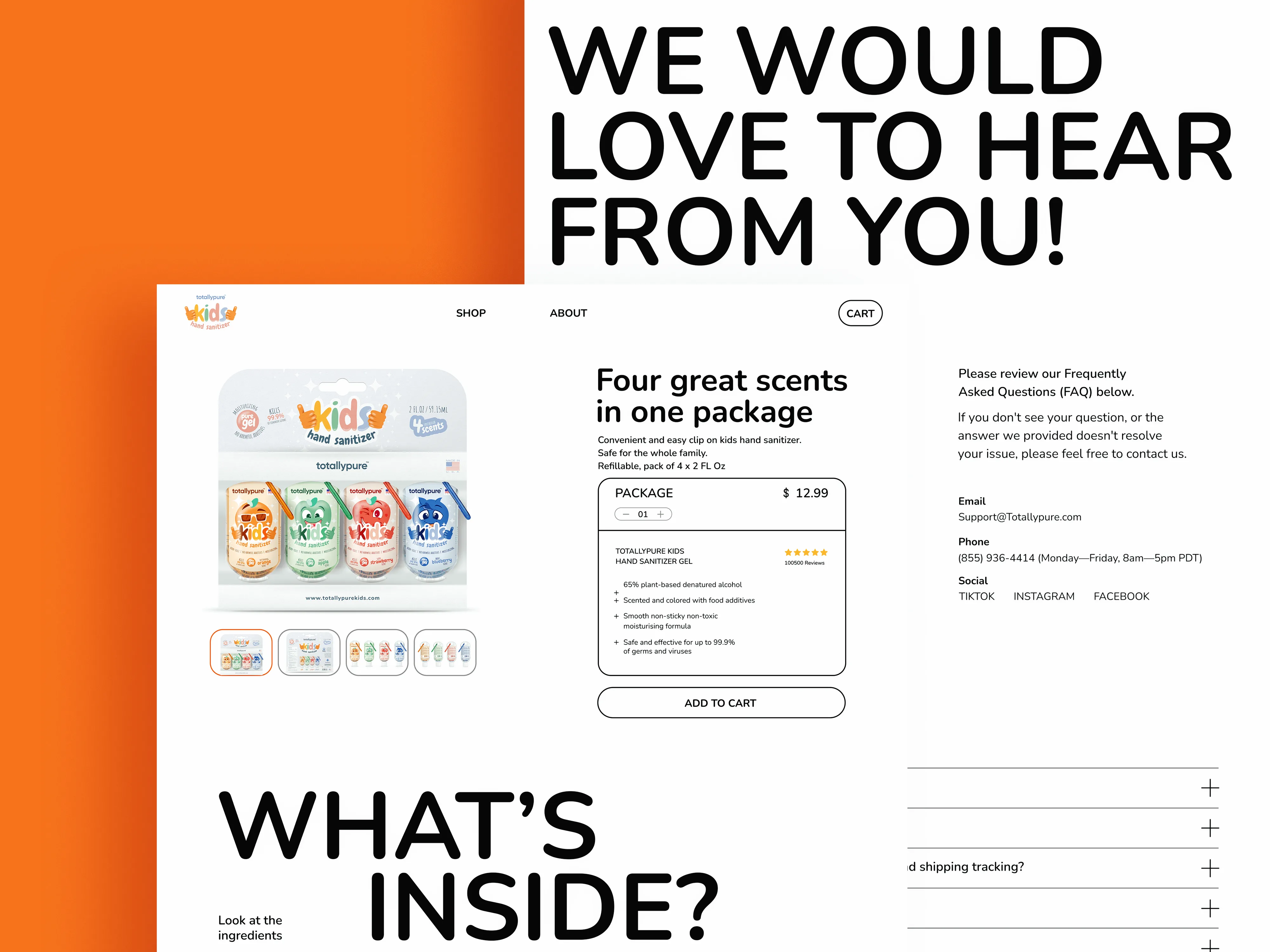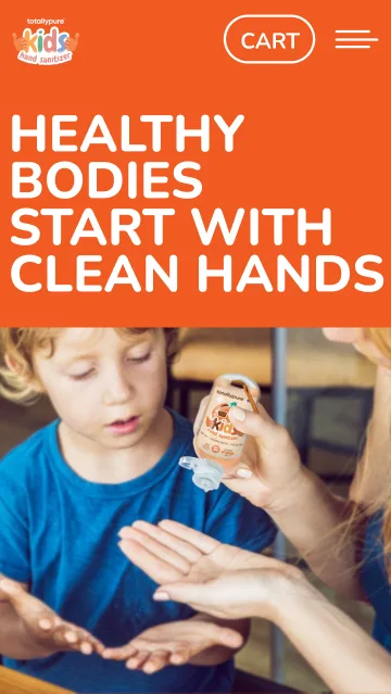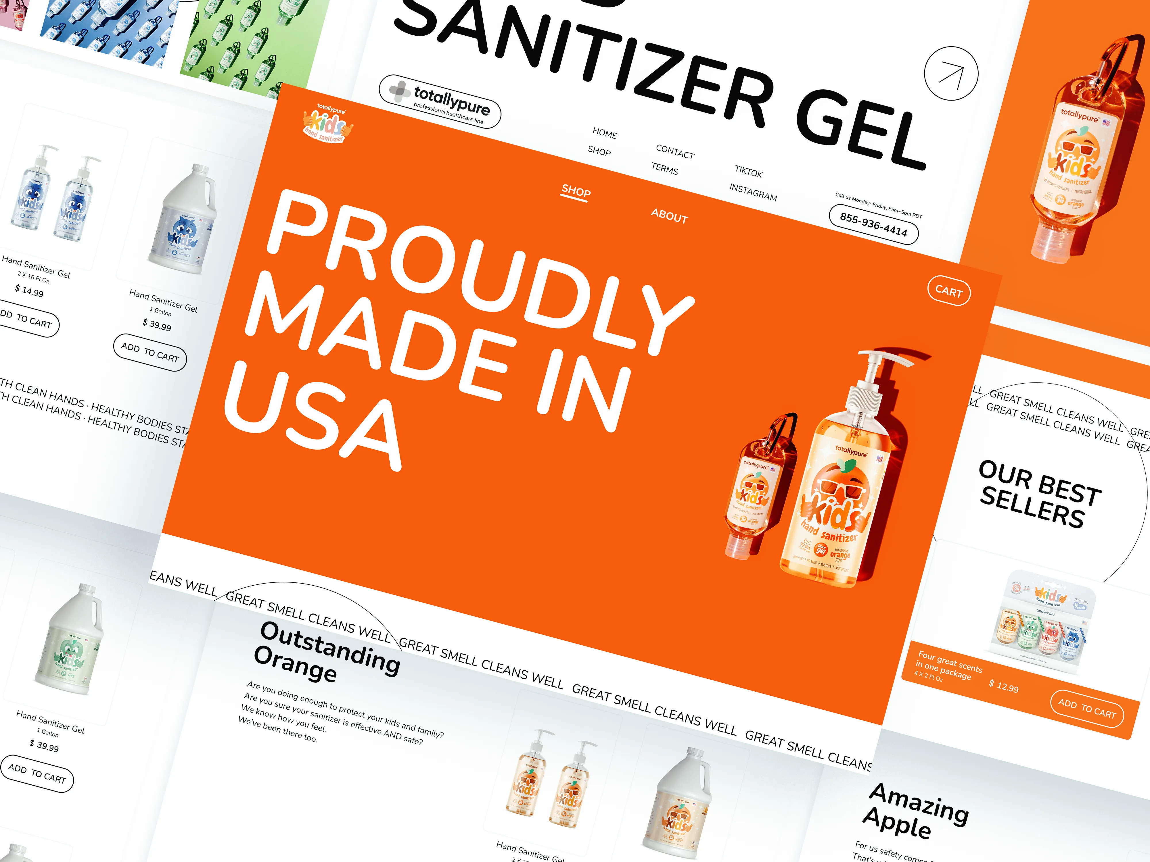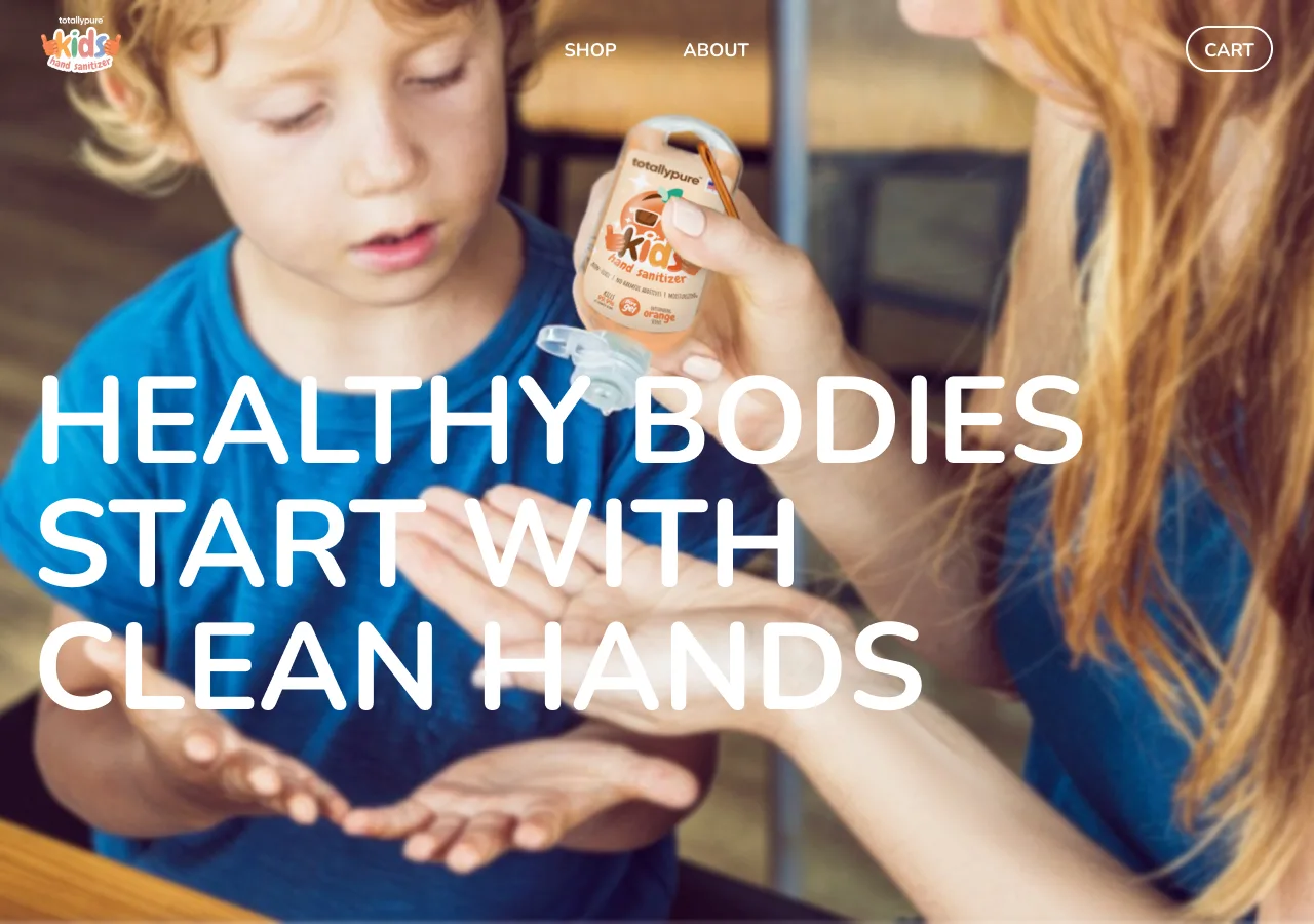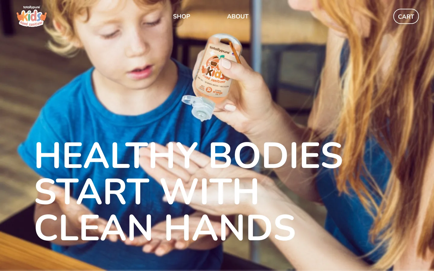 Website for an USA company specializing in children's sanitizers with delightful fruit fragrances.